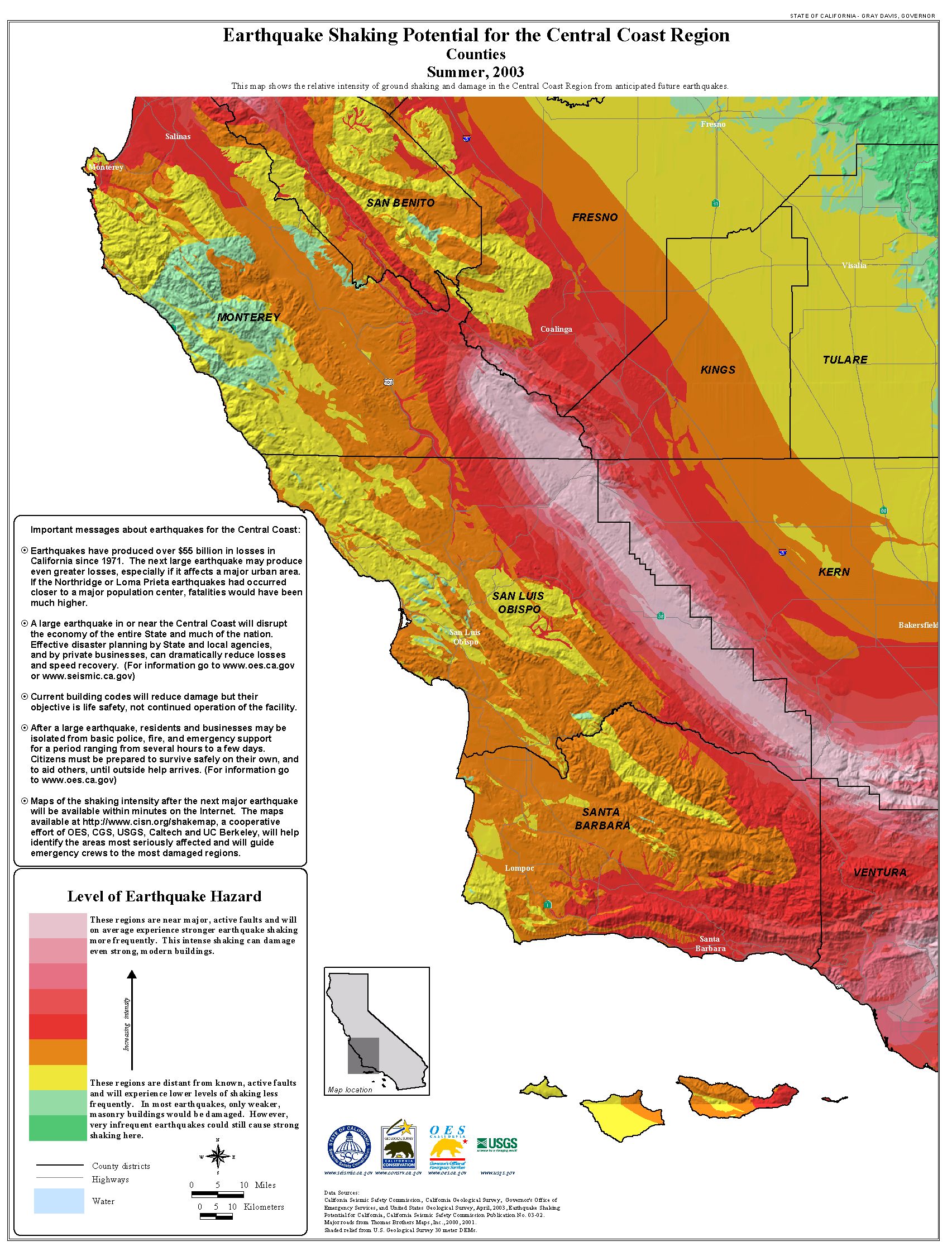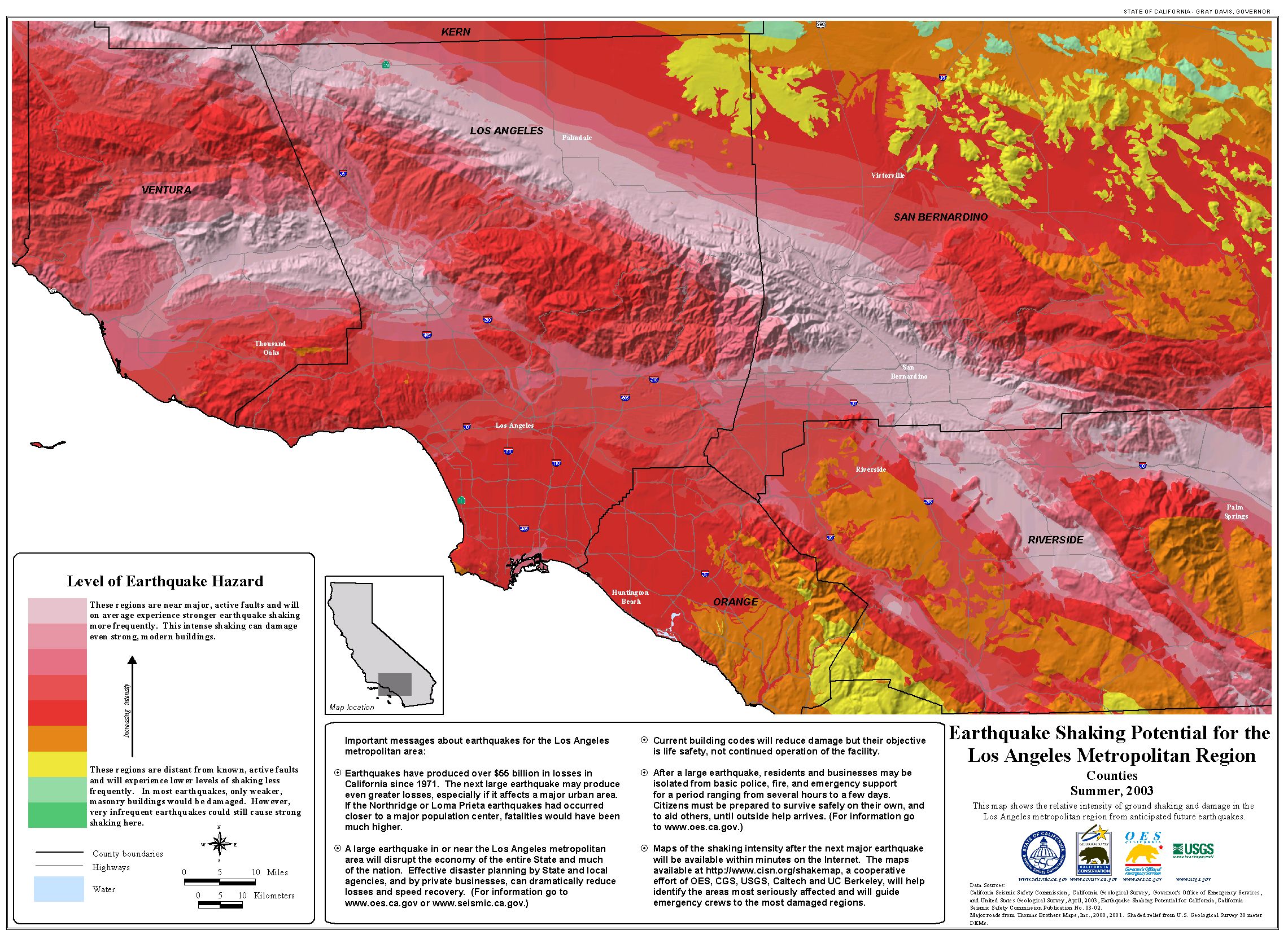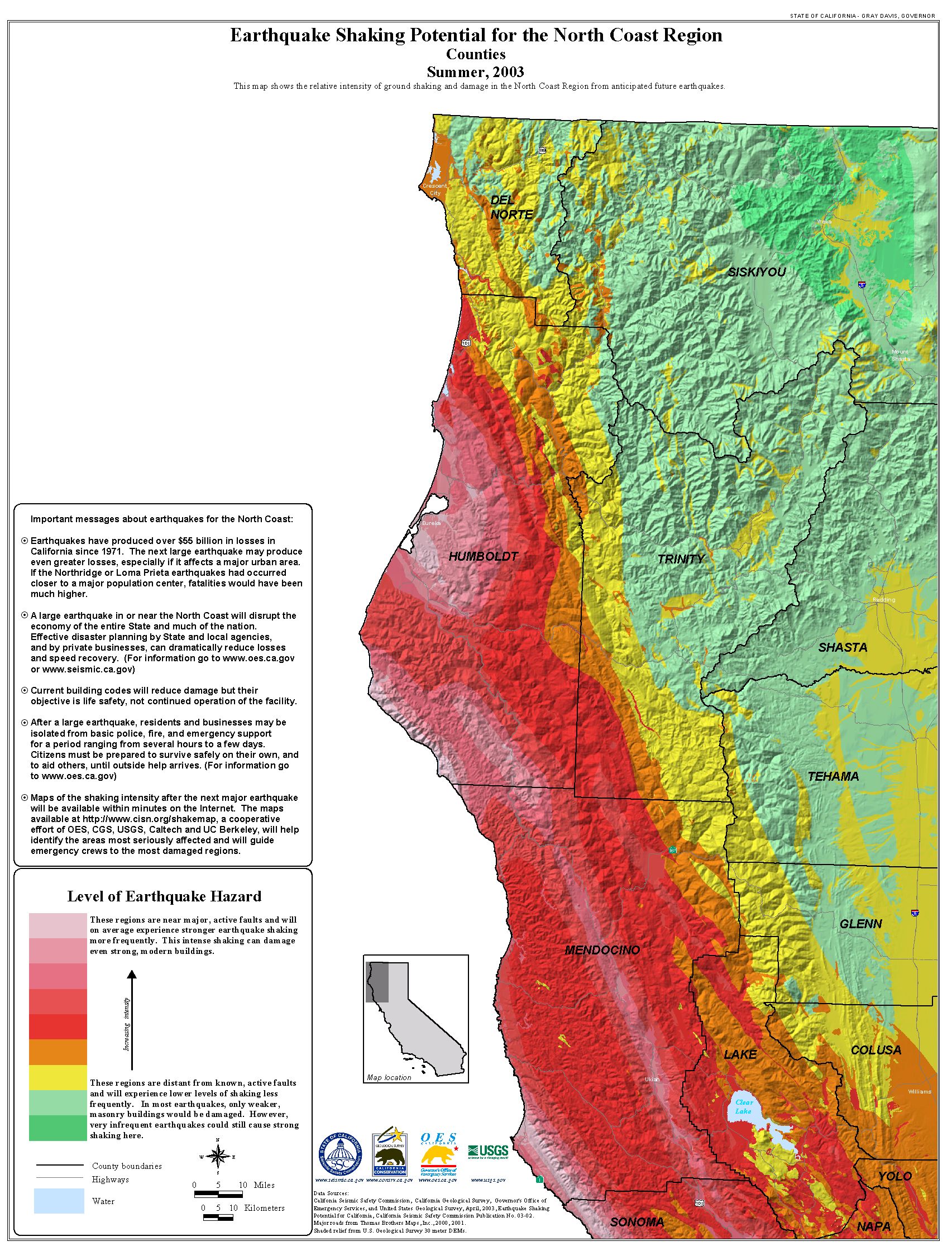 Regional earthquake shaking potential maps (index map) N. coast, S.F. Bay, C. coast, L.A., S.D., (jpg) N. coast print, S.F. Bay print, C. coast print, L.A print., S.D. print, (pdf)